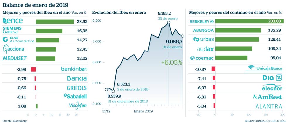 El Ibex inicia 2019 con paso firme: nueve cotizadas suben más de un 10% en enero Por |2019-02-01T21:51:53+00:00febrero 1st, 2019|Sin comentarios