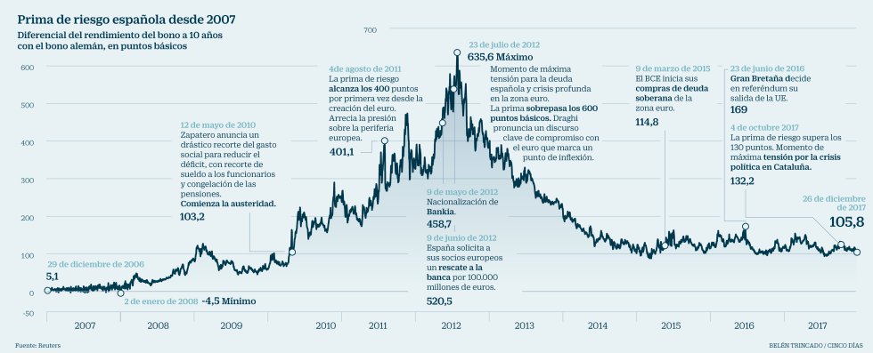 Los gestores prevén que la prima de riesgo española perfore los 100 puntos en 2018 Por |2017-12-27T22:09:23+00:00diciembre 27th, 2017|Sin comentarios